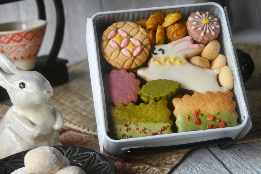 うさぎは縁結びや幸福のシンボルです。森のお届け屋さんのうさぎが七宝の吉祥文様が描かれたお菓子を皆様のもとへお届けいたします。